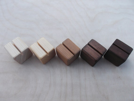 A 1/2 deep cut with the table saw blade set at a 10 degree angle makes the slots that hold the cards. Then, place a couple of eucalypti stems in the holes you drilled. Wood stain ( here's the color i used) white acrylic paint. The best idea is to make some yourself, according to your theme, colors and skills. In addition, if you like the navy place cards i used with these wood place card holders, you can get them as a free printable on my blog. If you want to make a diy business card holder with wood then you can as well start getting your work tools ready because this is easy and very workable. See more ideas about place card holders, wooden business card, business card holders. My etsy shop is at: You can make them in under 20 minutes! Diy fork photo display via morning. 4.5 out of 5 stars. Letter press photo holders via blitsy.com. Pattern and white paper combine to create a matted look.
