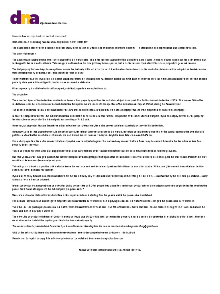 / Free Tax Computation / Rental Income Tax Computation | Renting | Tax Deduction : Free acca and cima on line courses | free acca, cima, fia notes, lectures, tests and forums.